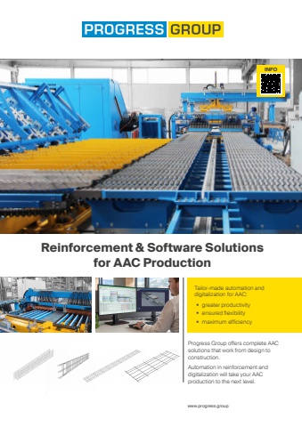 AAC WORLDWIDE %u2022 3.2025 PRODUCTION TECHNOLOGY 49Reinforcement & Software Solutions for AAC Productionwww.progress.groupProgress Group offers complete AAC solutions that work from design to construction.Automation in reinforcement and digitalization will take your AAC production to the next level.%u0083 greater productivity%u0083 ensured flexibility%u0083 maximum efficiencyTailor-made automation and digitalization for AAC:INFO